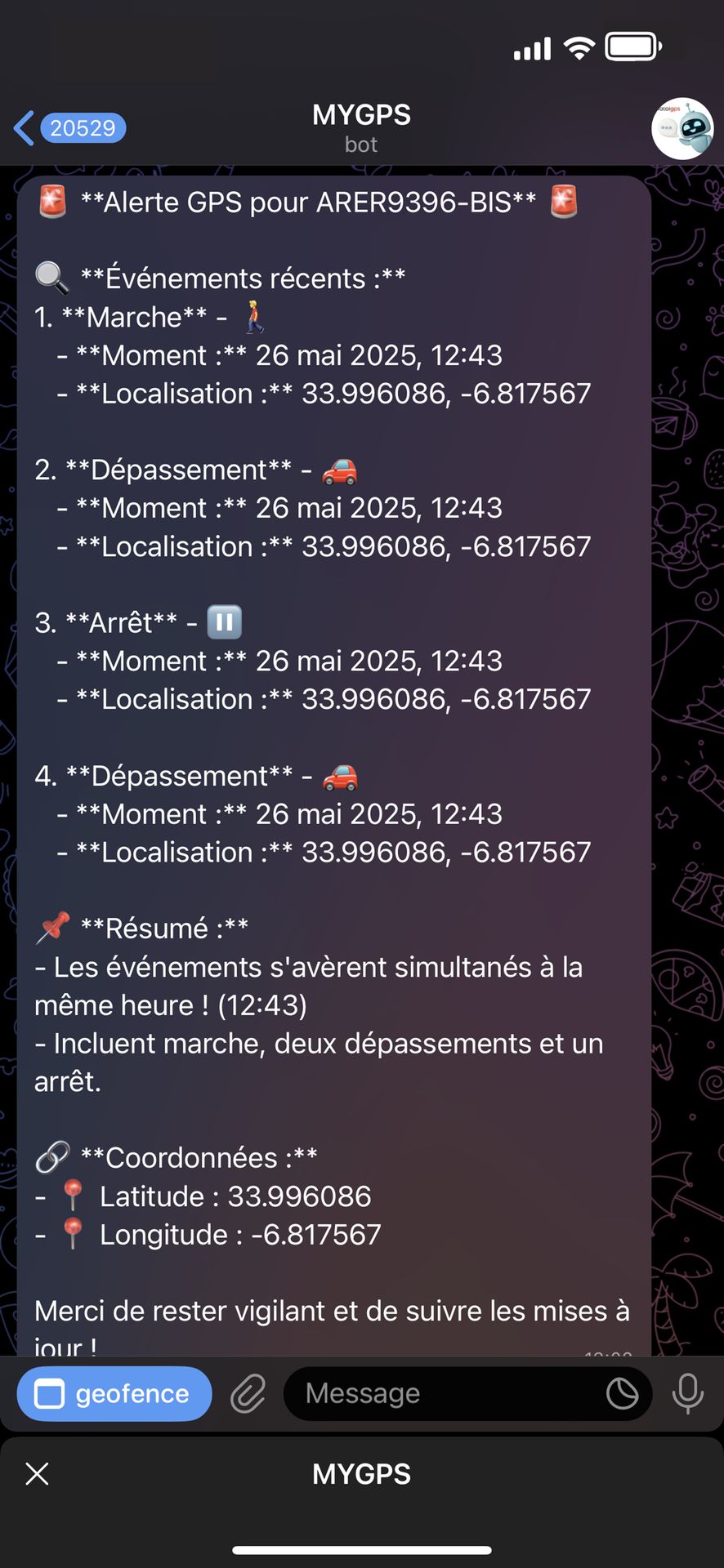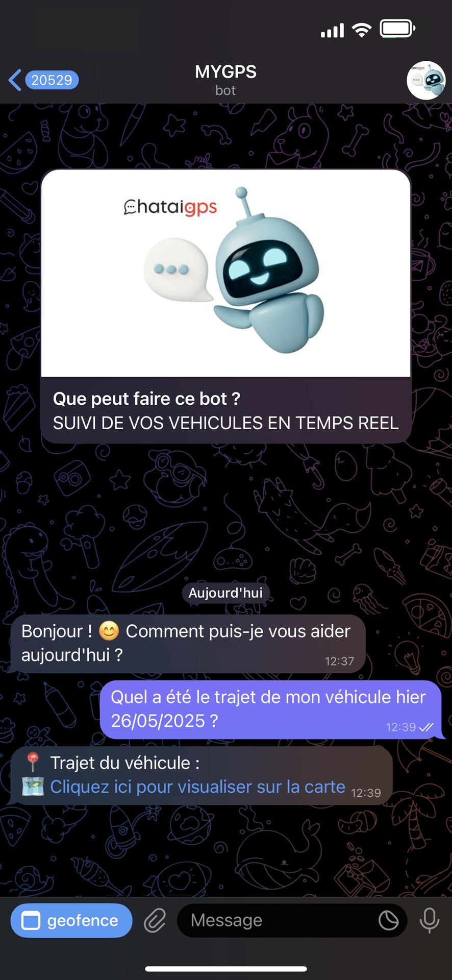 Oui, c’est tout à fait possible ! Pour la gestion d’une flotte de véhicules, nous pouvons créer un groupe sur WhatsApp ou Telegram ou toute autre plateforme de messagerie. Chaque véhicule y sera représenté comme un membre distinct. Vous pourrez ainsi poser des questions spécifiques à chaque véhicule ou recevoir des notifications globales pour l’ensemble de la flotte — le tout de manière simple, centralisée et intuitive.